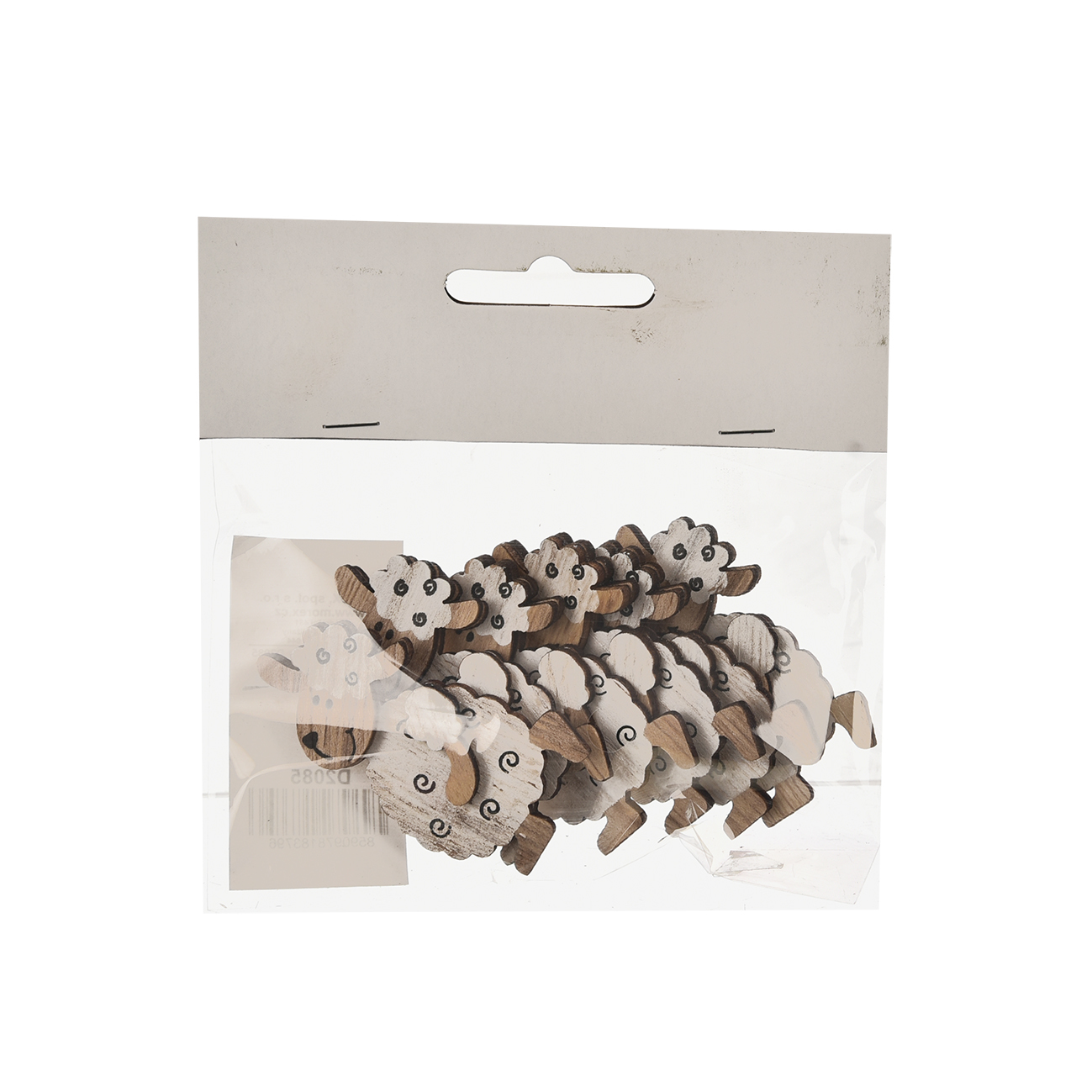 Přízdoba dřevo ovečka bílá 6 ks 3x6 cm