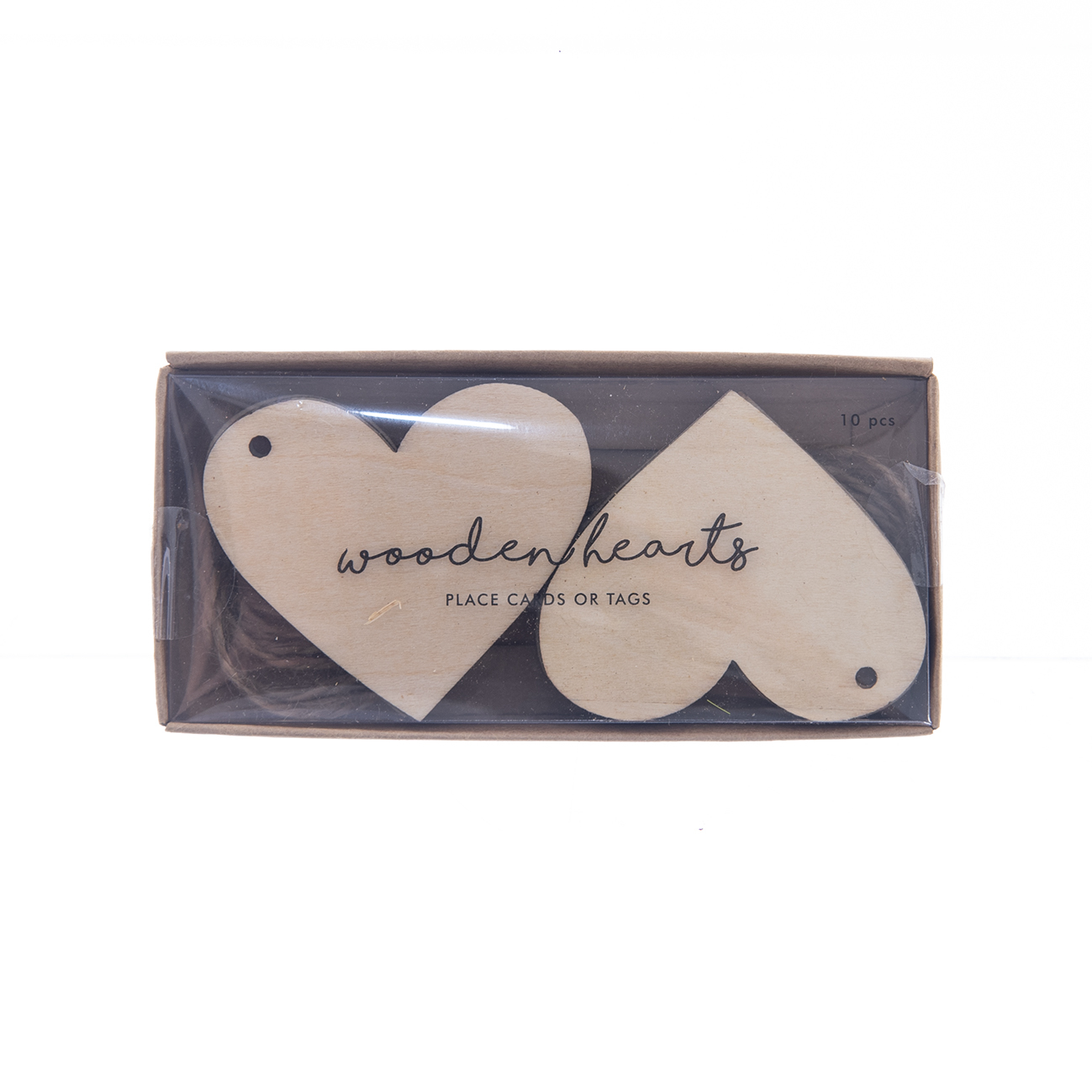 Jmenovka dřevo/provázek srdce béžová 10 ks 6x5 cm