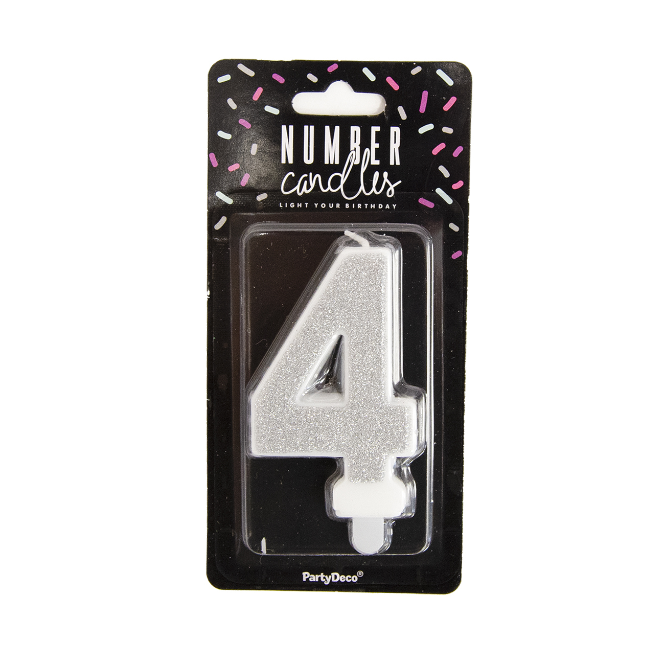 Svíčka dortová číslo 4 stříbrná 7 cm