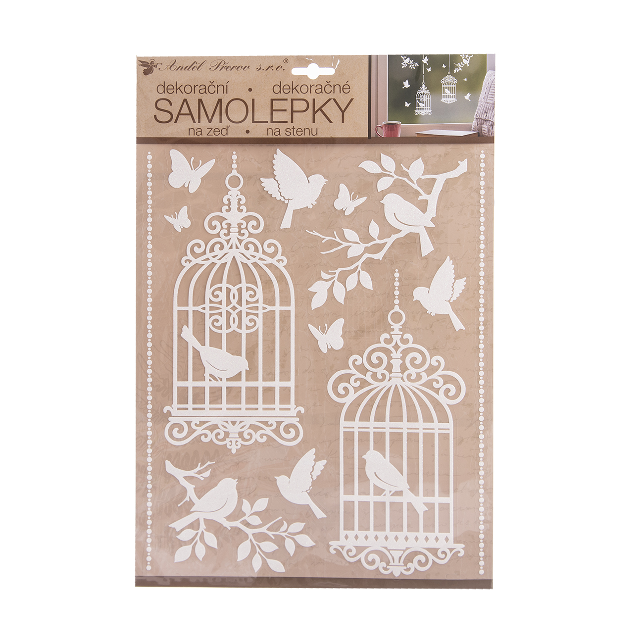 Samolepky na zeď ptačí klece bílé 27x41 cm