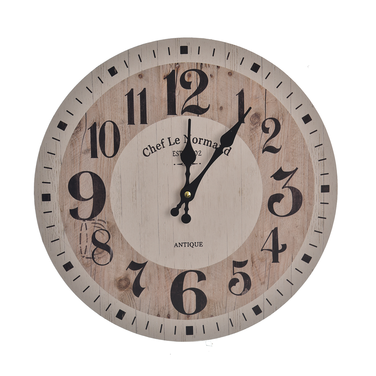 Hodiny nástěnné dřevo Antigue s průměrem 34 cm jsou skvělou volbou pro všechny, kdo hledají elegantní a praktický doplněk do svého domova nebo kanceláře. Jejich jemný a přírodní vzhled přidá prostoru teplo a útulnost, zároveň ale nepůsobí příliš rušivě.