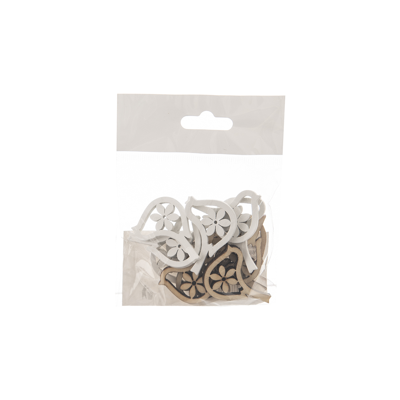Přízdoba dřevo ptáček bílá/hnědá 12 ks 4x3 cm