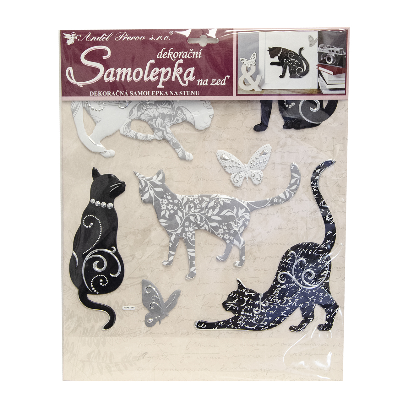 Samolepky na zeď kočky se stříbrným dekorem 38x31