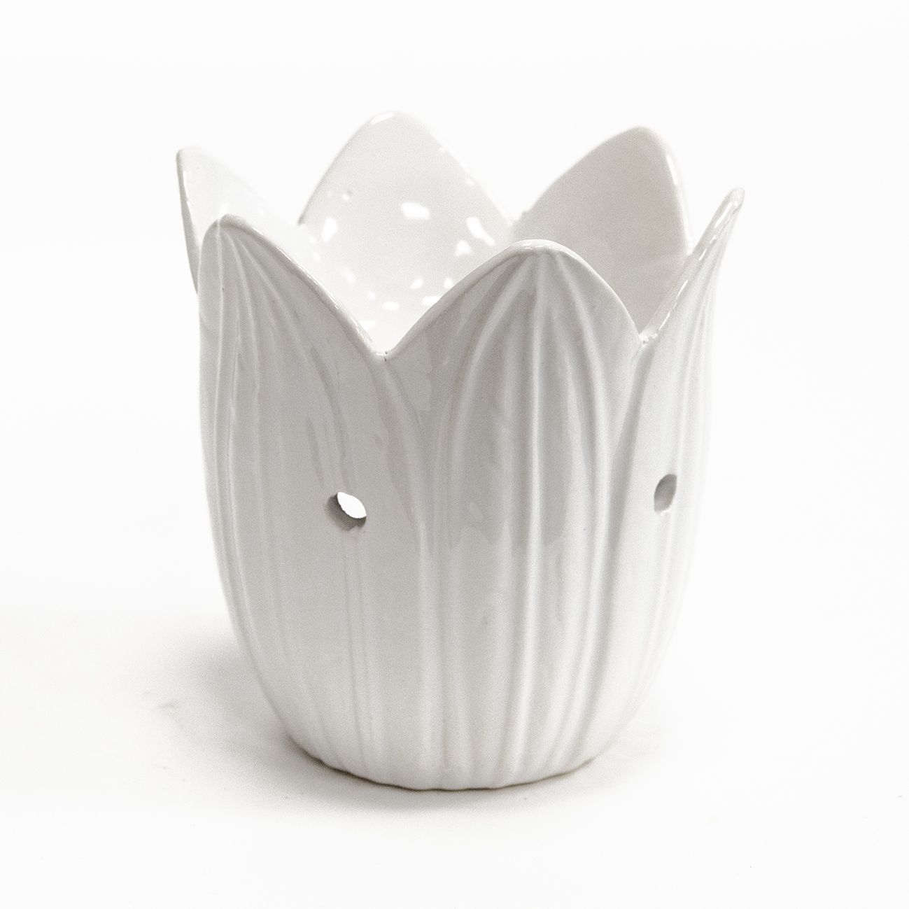 Aromalampa v nadčasovém bílém provedení s jemným květinovým motivem je ideálním doplňkem pro vytvoření příjemné atmosféry ve vašem domově nebo kanceláři.