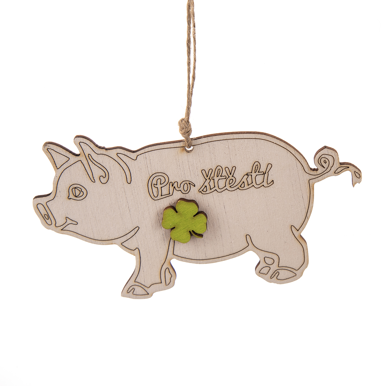 Prasátko dřevo bílé ,,pro štěstí,, 8x5 cm