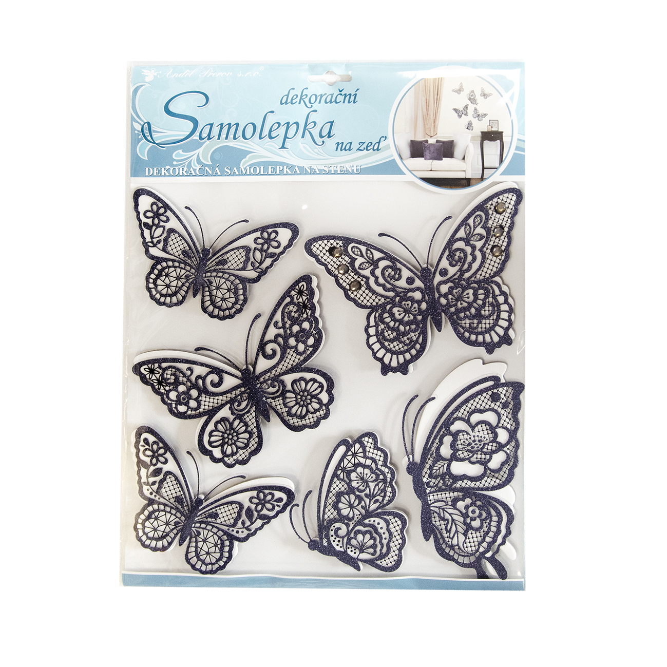 Samolepky na zeď motýli černí pohyb. křídla 30x30