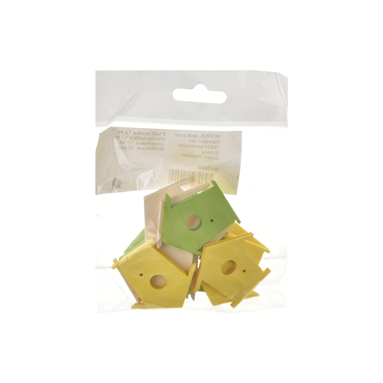 Přízdoba dřevo ptačí budka 3 barvy 12 ks 4x3,5 cm