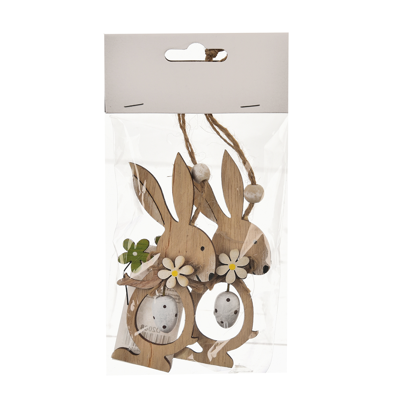 Zajíc dřevo závěsný hnědý 2 ks - skladem, lehce poškozený kus