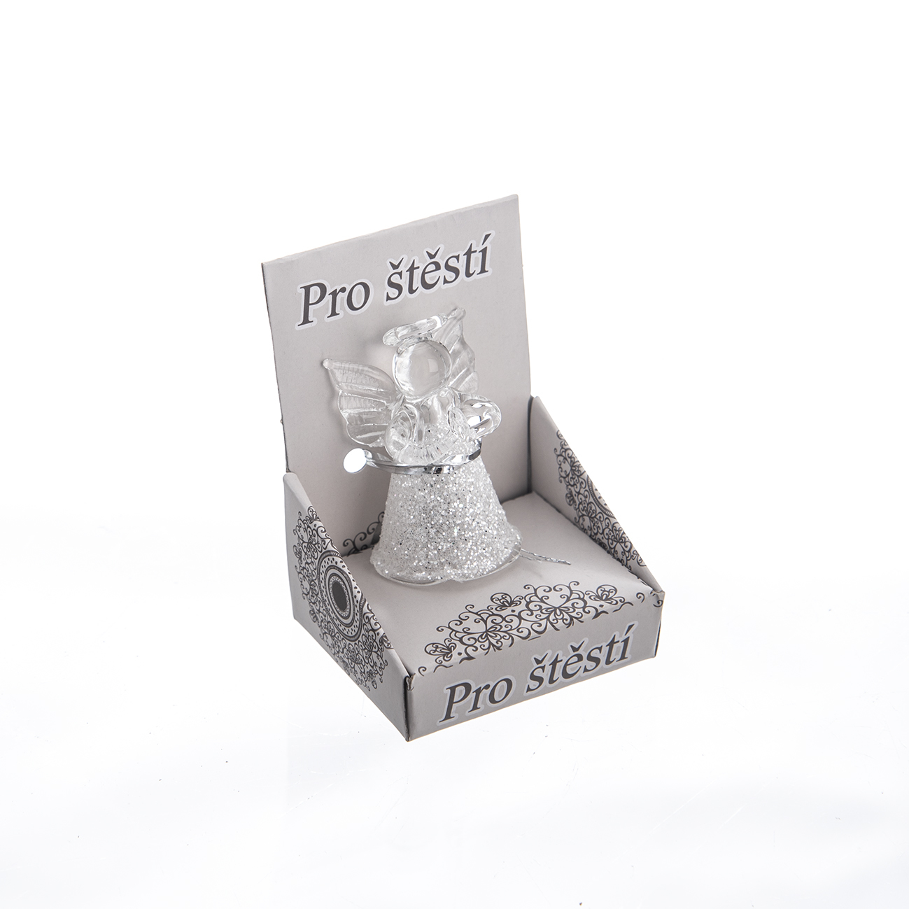 Anděl sklo v krabičce 3x3x4,5 cm