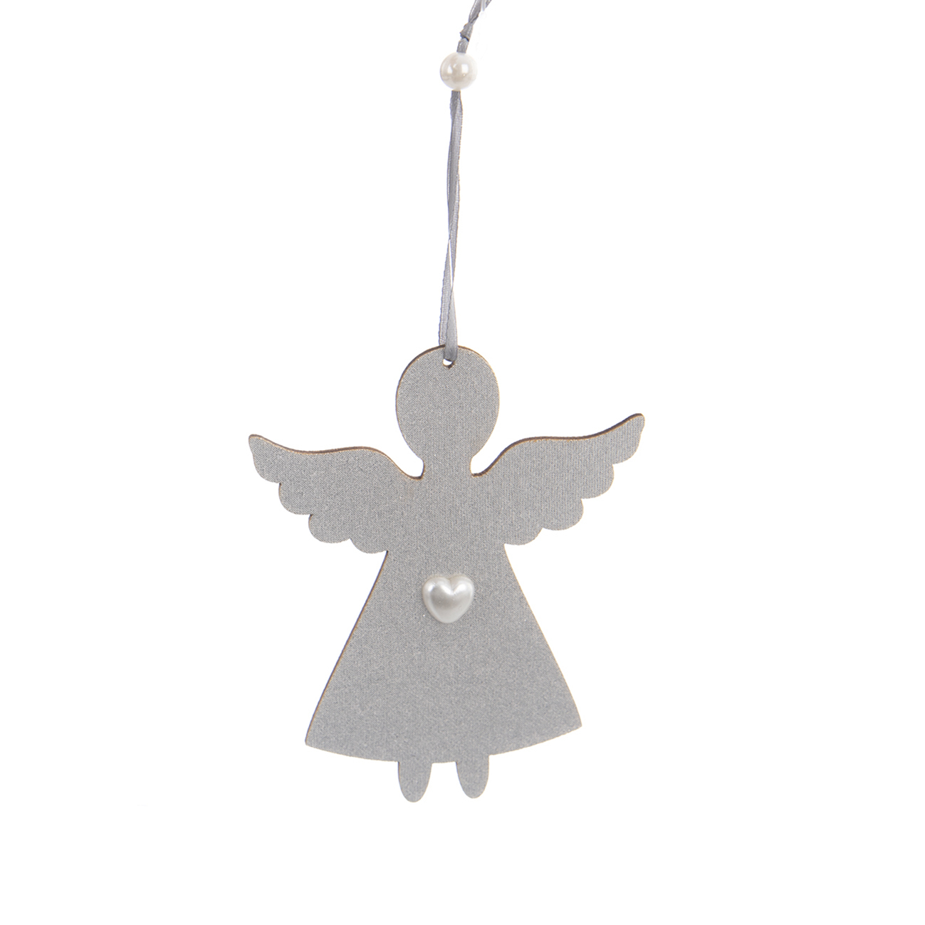 Anděl dřevo perla závěsný bílý 11x13 cm