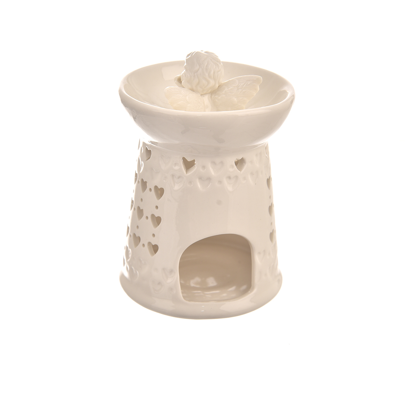 Aromalampa ker. srdce anděl bílá 11x14 cm