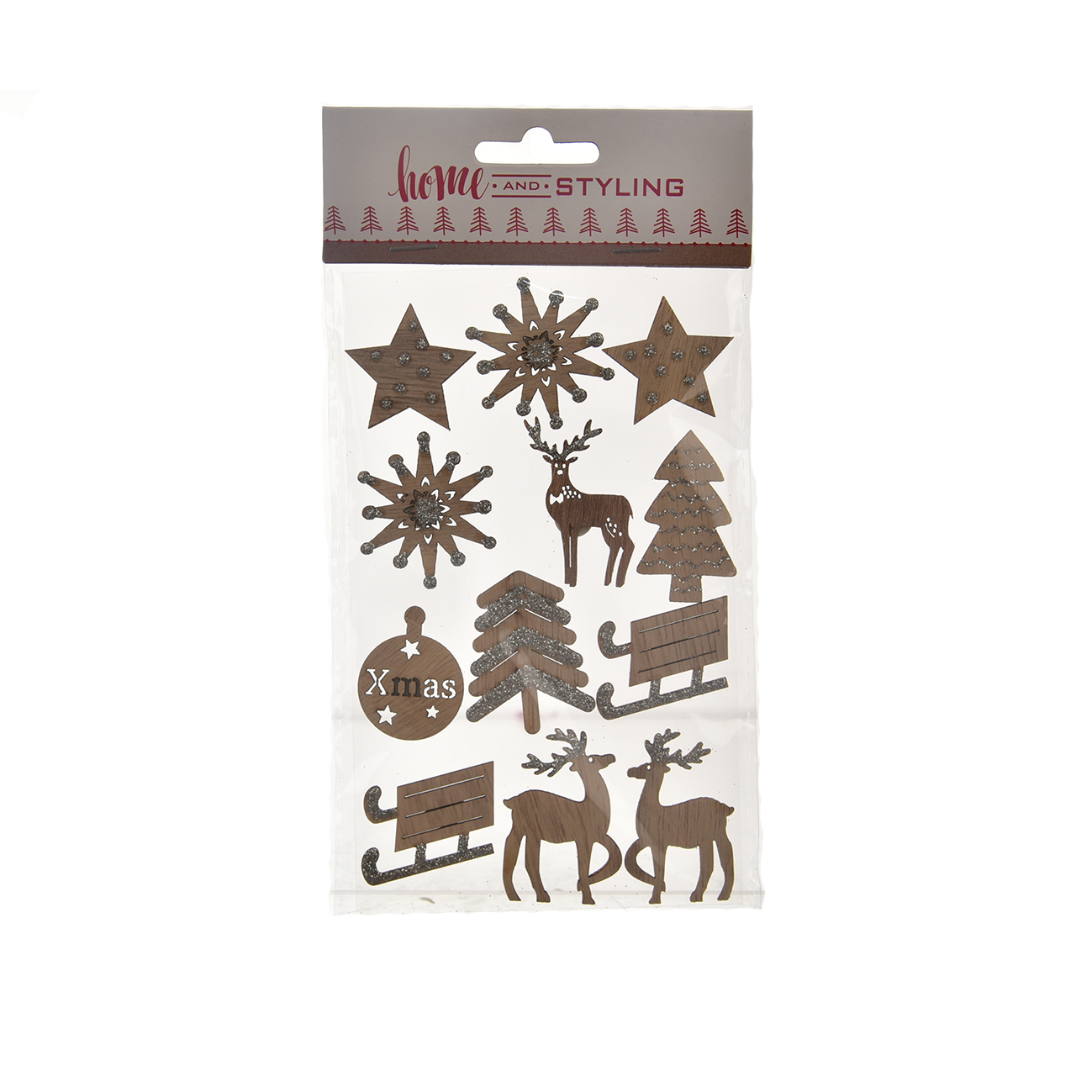 Samolepky dřevo vánoční barva stříbrná 12 ks