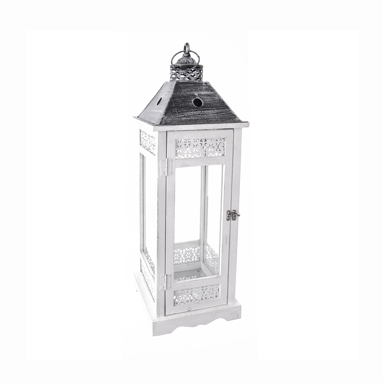 Lucerna dřevo/kov bílá střední 22x22x67 cm