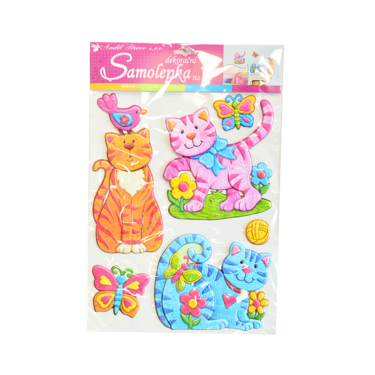 Samolepky na zeď kočky plastické 42x28 cm