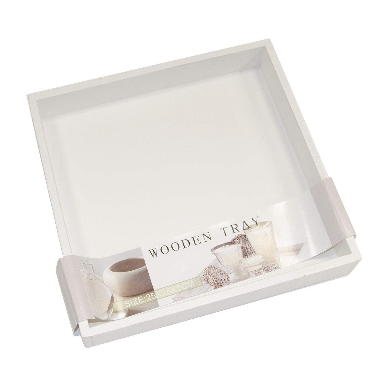 Proměňte svůj interiér s praktickým a stylovým dekoračním tácem z bíle nalakovaného dřeva! Tento elegantní tác vám umožní jednoduše a efektivně uspořádat drobnosti nebo servírovat oblíbené lahůdky.