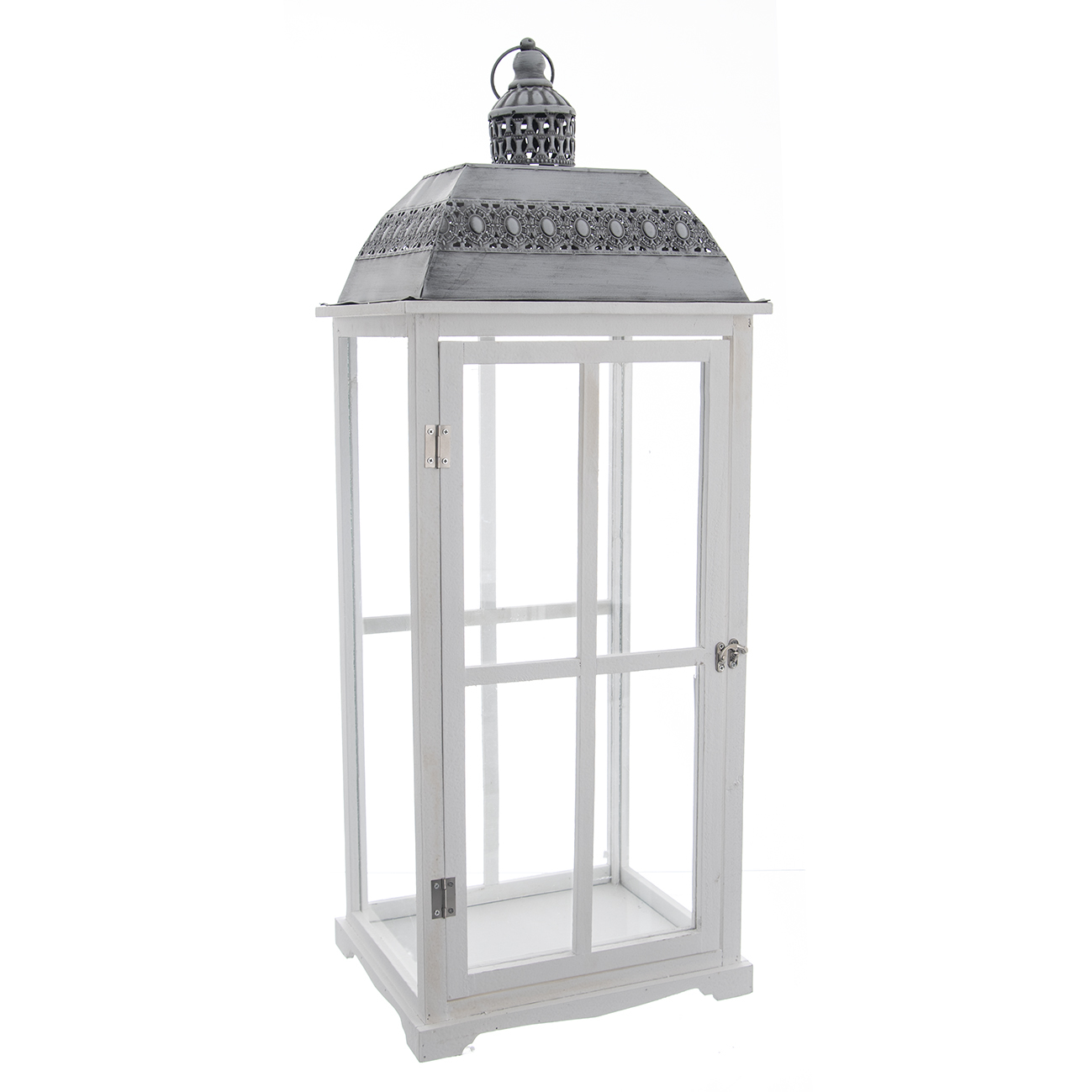 Lucerna dřevo/kov bílá velká 33x27x87 cm