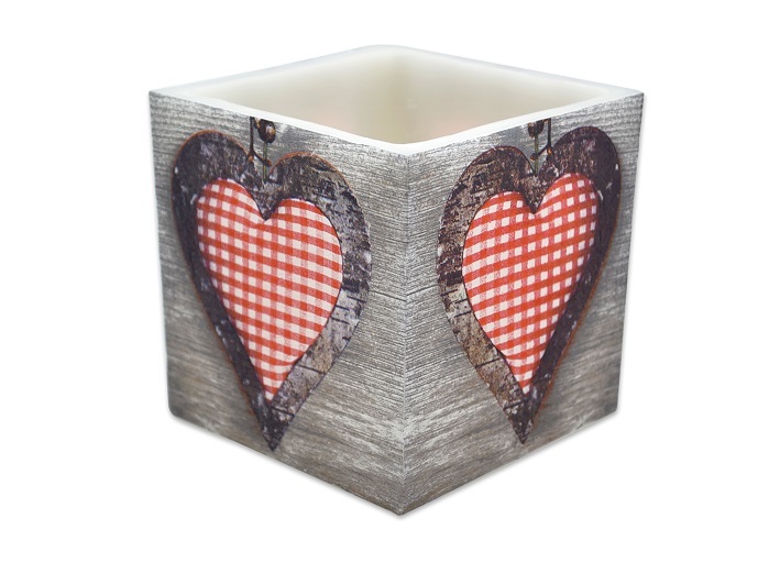 Lampion vosk srdce ve dřevě hranatý 12,5x12,5 cm