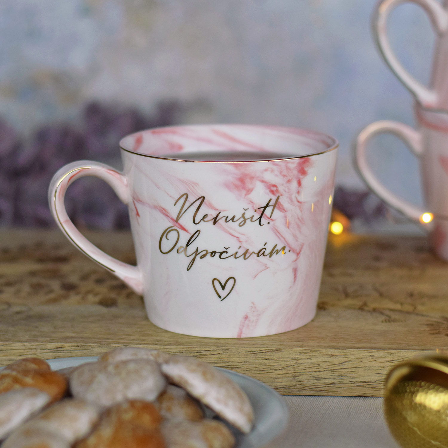 Milujeme hrníčky! Proto jsme se na tuto námi navrhnutou mramorovou kolekci velmi těšili. Zlaté nápisy a linkování dodávají už i tak krásnému hrníčku punc luxusu.