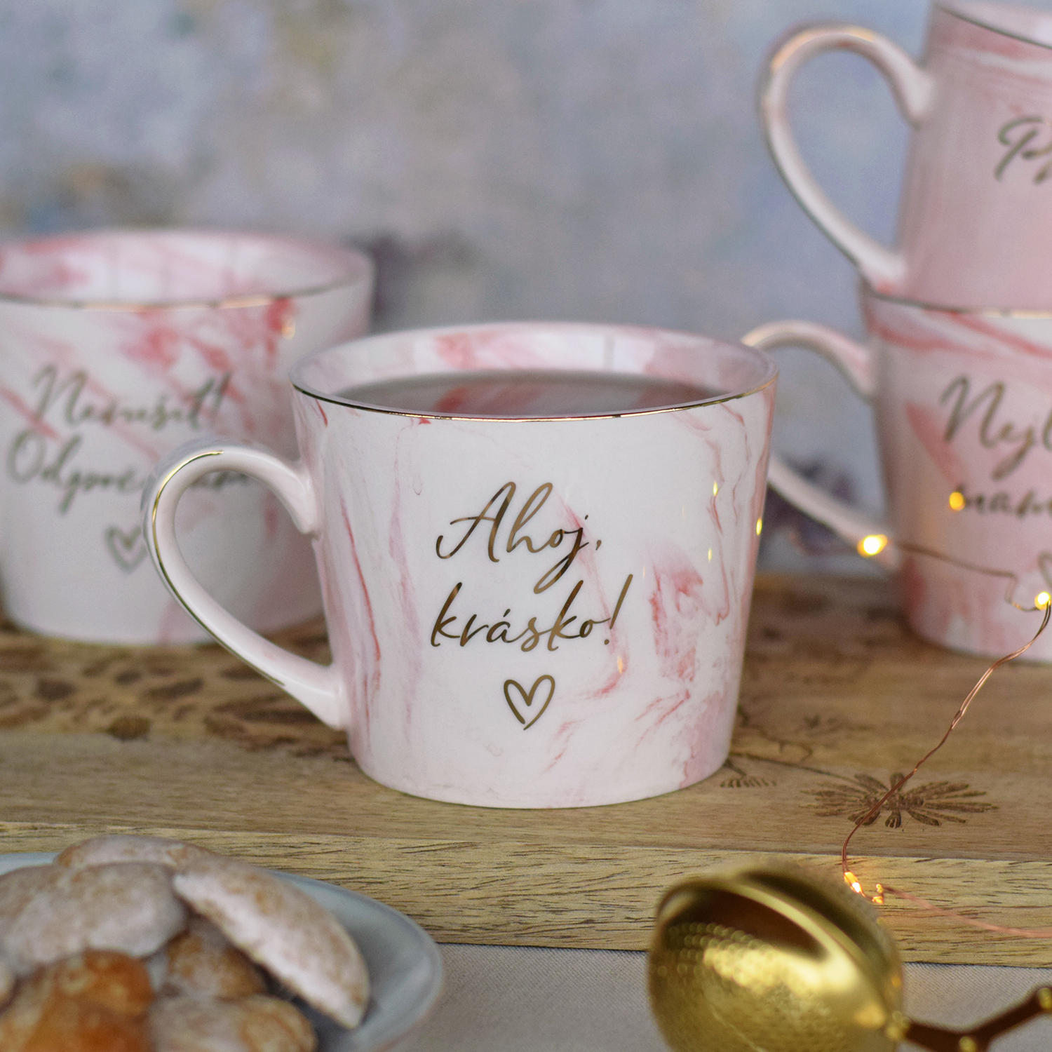 Milujeme hrníčky! Proto jsme se na tuto námi navrhnutou mramorovou kolekci velmi těšili. Zlaté nápisy a linkování dodávají už i tak krásnému hrníčku punc luxusu.