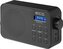FM tuner, LCD displej, 30 FM předvoleb, budík, napájecí USB-C kabel součástí balení/4xAA baterie (nejsou součástí), 3.5mm sluchátkový výstup, teleskopická anténa číst celé