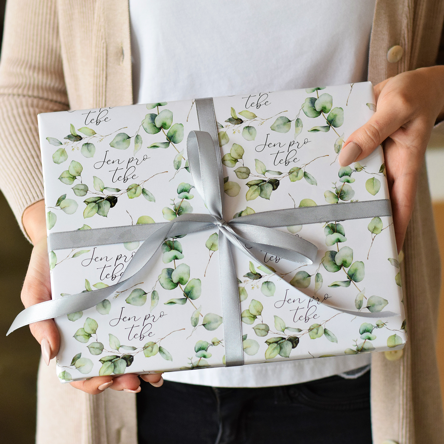 Originální dárkový balící papír velikosti A2 (42,00 × 59,40 cm) s českým textem a trendy dekorací.