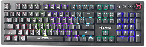 Klávesnice US, herní, drátová (USB), černá, mechanická, PUBG klávesy;Podsvícení: mix barev (rainbow);Makro klávesy;Multimédia + kolečko pro ovládání hlasitosti;Typ klávesnice: mechanická (modré spínače);Kompatibilní s: Windows 7 a vyšší číst celé