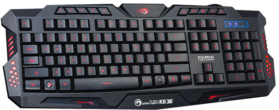Klávesnice US, herní, podsvícená typ drátová (USB), černá;odezva kláves - pouhých 1ms;Počet kláves: 114;Délka trasy klávesy: 3,5 ± 0,3 mm;Antighost: rollover 19 kláves;Podsvícení: 3 barvy + nastavení mezi stálým svitem a světelným efektem;Délka kabelu: 1,5 m;Podpora OS: WinXP a vyšší