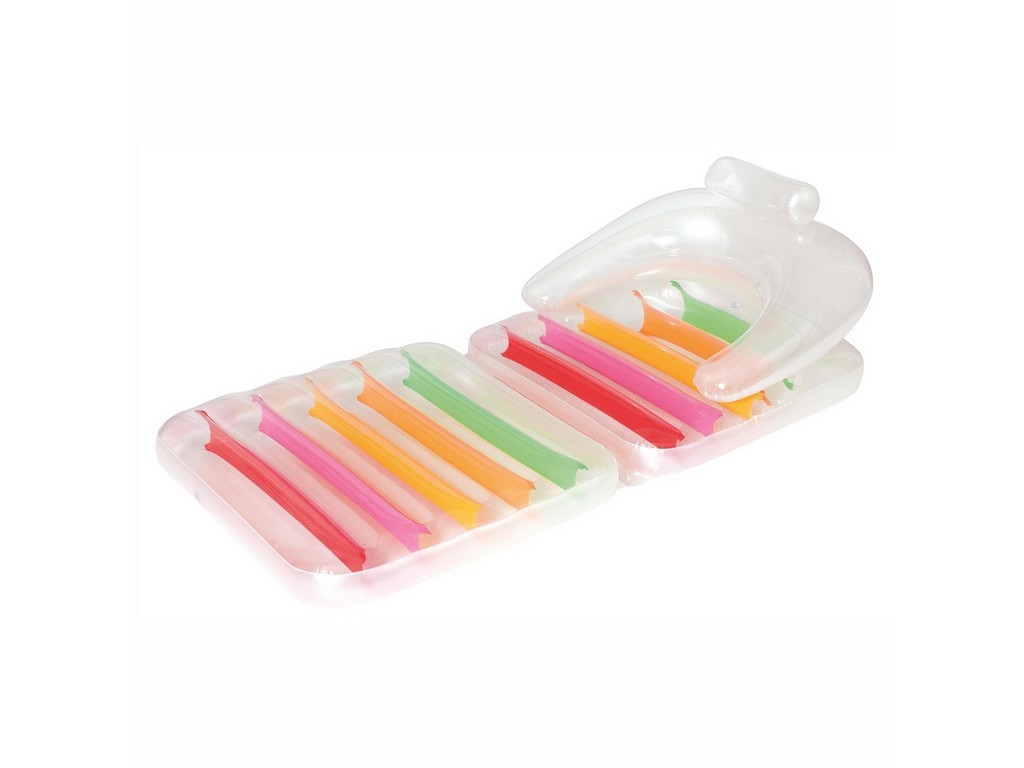 Připravte se na barevné léto plné relaxace, když se budete vznášet na nafukovací matraci Bestway® High Fashion. Díky speciálnímu konvertibilnímu designu 2 v 1 můžete tento elegantní flotsam použít jako židli nebo lehátko. Nafukovací záda, područky a hlavová opěrka umožňují nejlepší možné pohodlí. Nafukovací matrace má 3 vzduchové komory pro extra vztlak a snadné nafukování a vyfukování. Nafukovací matrace má také průhledný design s barevnou konstrukcí I-Beam pro maximální podporu. Cákání na slunci ještě nikdy nebylo tak zábavné! Konstrukce: Nafouknutá velikost: 178 x 80 x 49 cm Rozměr ve složeném stavu: 201 x 89 cm Maximální nosnost: 90 kg Vyrobeno z odolného PVC Robustní konstrukce I-Beam 3 vzduchové komory Pro 1 osobu Barevné průhledné provedení Vybavení: Nafukovací opěrka zad a područek Skládací provedení Změna z lehátka na křeslo pojistné ventily Včetně opravných záplat Upozornění: Nebezpečí! Tato nafukovací matrace je vhodná pouze pro zkušené plavce, protože nenabízí spolehlivou ochranu proti utonutí!