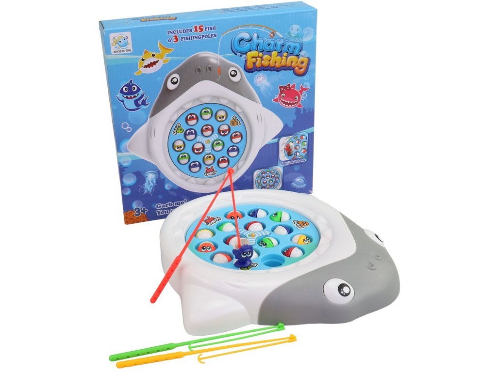 Rybičky, žralok, na baterie. Rybolov ve tvaru žraloka je velice oblíbenou hrou. Tato hra je určena až pro 3 hráče. Po spuštění hry, se v hracím poli začnou točit rybky a jejich pusy se postupně otevírají. Úkolem hry je ulovit co nejvíce rybiček. Vyhrává ten, který nachytal největčí počet ryb. Napájení: 2 x AA baterie nejsou součástí balení.Rozměr: 25 x 28 x 3,5 cm Doporučený věk: 3+