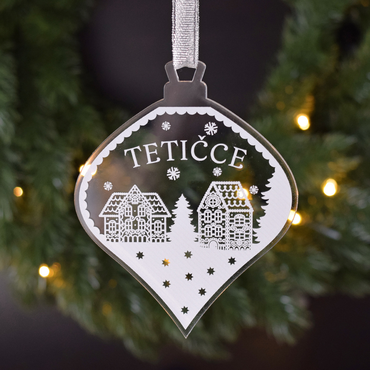 S krásnou ozdobou z imitace skla můžete potěšit vaše nejbližší. Sněhobílý motiv vynikne na vánočním stromečku. K ozdobě dodáváme stříbrnou stuhu. velikost: 12,5 x 10 cm