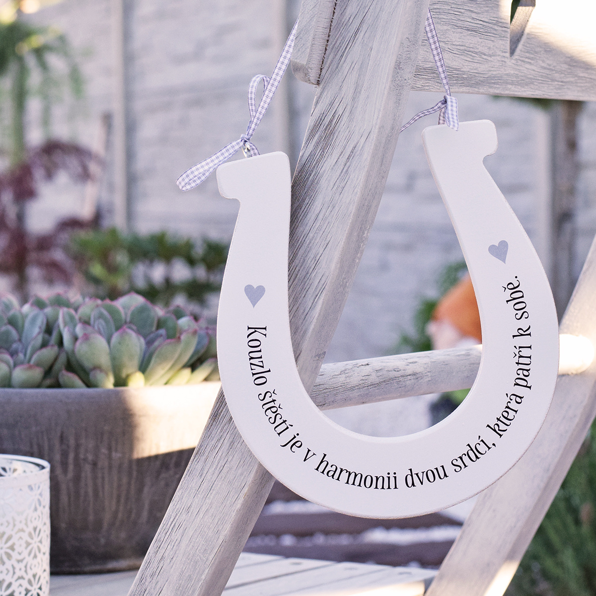 Dřevěná podkova s citátem může být nejen originálním dárkem, ale i krásnou dekorací.velikost: 16x18 cm
