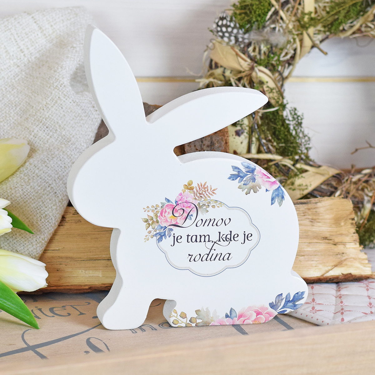 Dřevěný zajíček na postavení v jarním duchu s rodinným citátemvelikost 17x20 cm číst celé