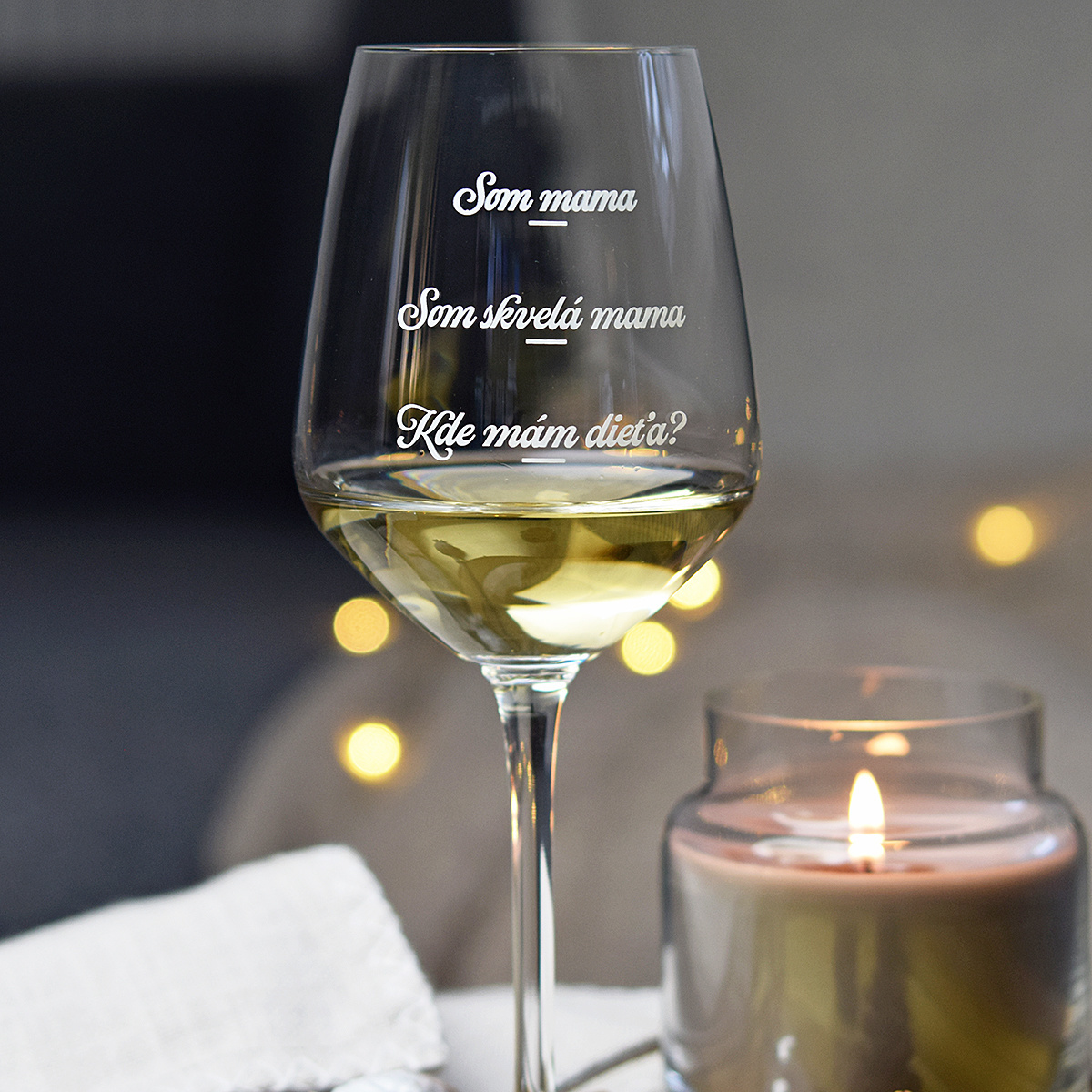 Tato sklenička je ozdobena textem s tak trochu odlehčeným typem humoru. Je určitě příjemné jednou za čas zrelaxovat a odpočinout si i od svých milovaných ratolestí.