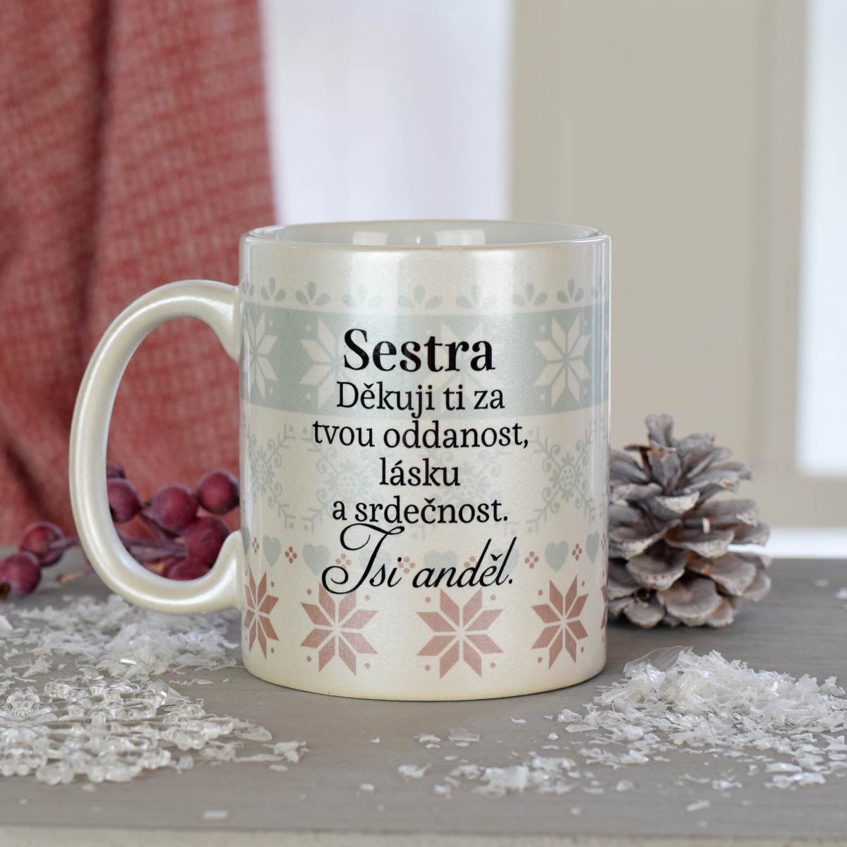 V zimním období si každý přeje schovat se pod deku a v pohodlí si vypít hrnek čaje, kávy nebo horké čokolády. Právě tyto chvíle nás inspirovali k vytvoření tohoto stylového hrnečku, který je navíc doplněn krásným citátem. Hrneček s perleťovými odlesky se krásně třpití a dokonale vystihuje poklidnou zimní atmosféru.