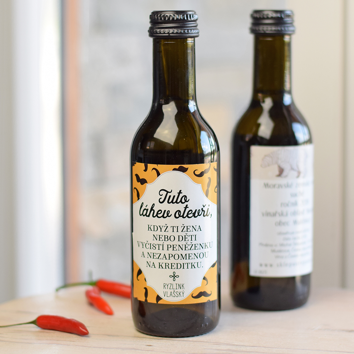 Perfektní dárek, který rozesměje i zalahodí. Lahvinka, která obsahuje výborné bílé víno a vtipný citát.