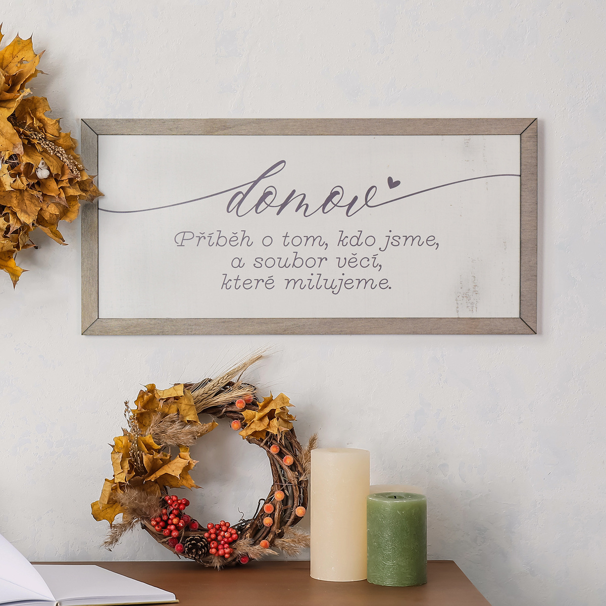 Dřevěná dekorace na zeď - Domov je příběh