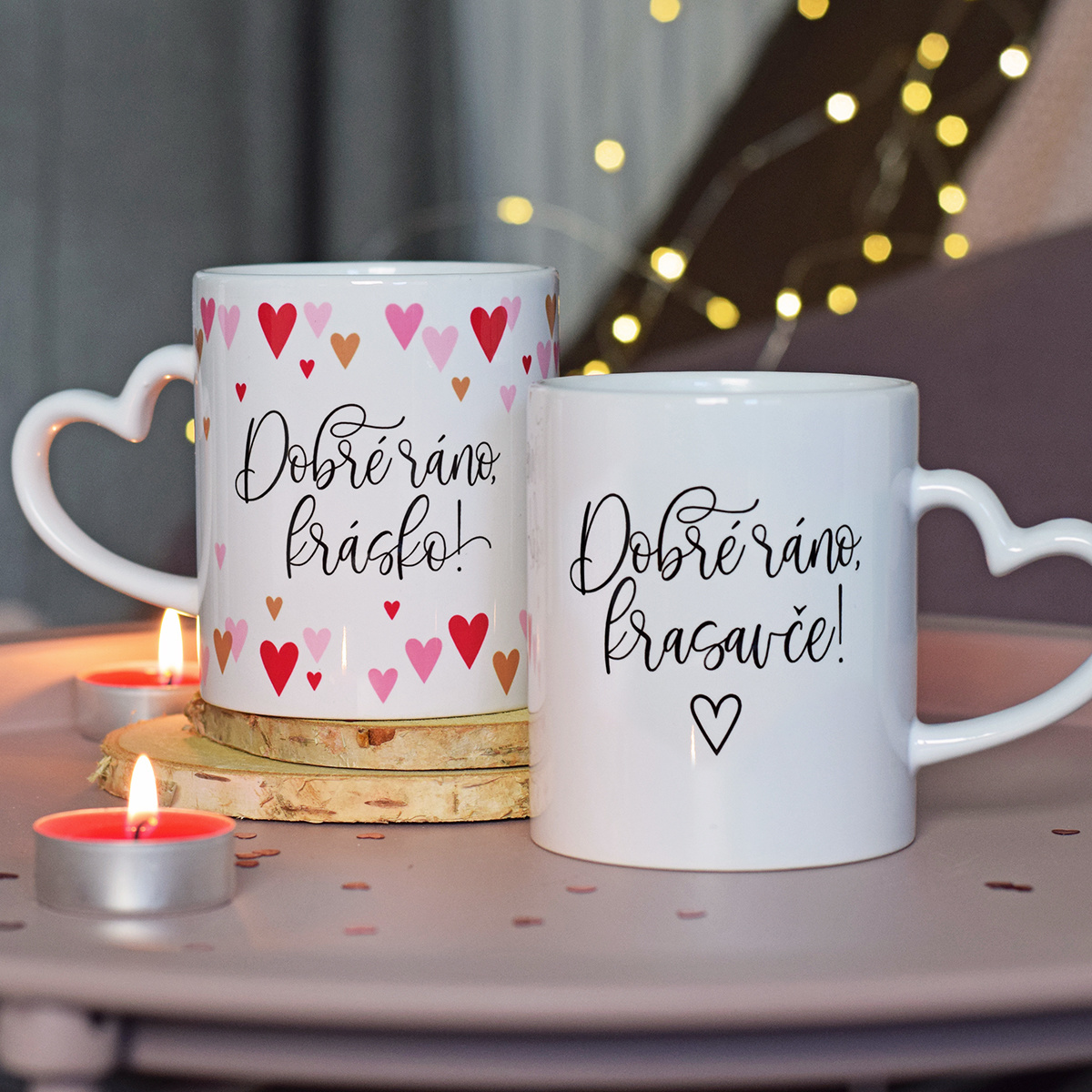 Set hrnků srdce - Dobré ráno, krásko/krasavče!