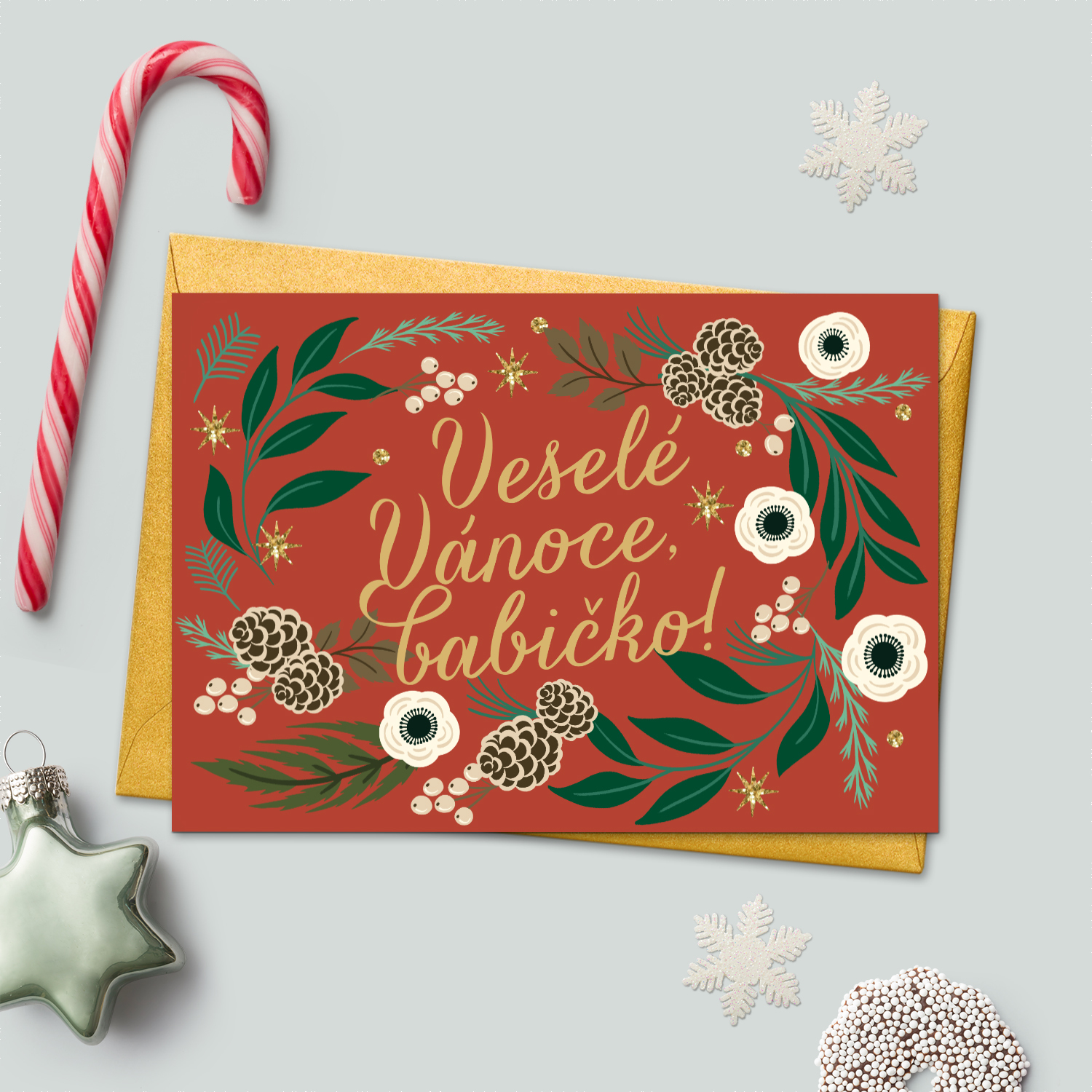 Vánoční přání se zlatou obálkou - Veselé Vánoce, babičko!