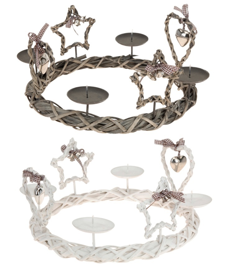 Adventní svícen věnec - srdce a hvězdy - tmavá