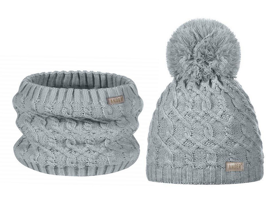 Dívčí zimní sada - čepice + nákrčník - šedá