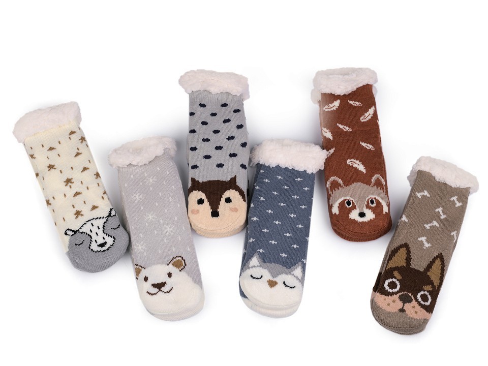 Maxi teplé ponožky, s motivem zvířátka na špičce, nedají zimě šanci. Jsou heboučké, z vrchní strany pletené, uvnitř je teplá chlupatá podšívka, která věrně imituje vlnu.