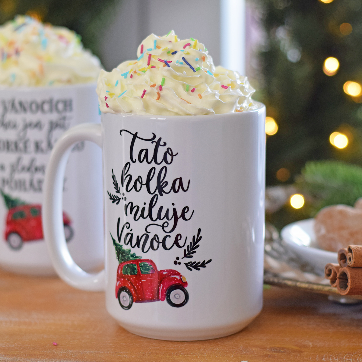 XXL Hrnek s autíčkem - "Tato holka miluje Vánoce."O vánočních svátcích je ten pravý čas se pohodlně usadit na gauč, dát si nohy nahoru a naladit televizi na vánoční pohádky. S tímto hrnečkem si vychutnátu tu pravou vánoční atmosféru.objem: 400 ml