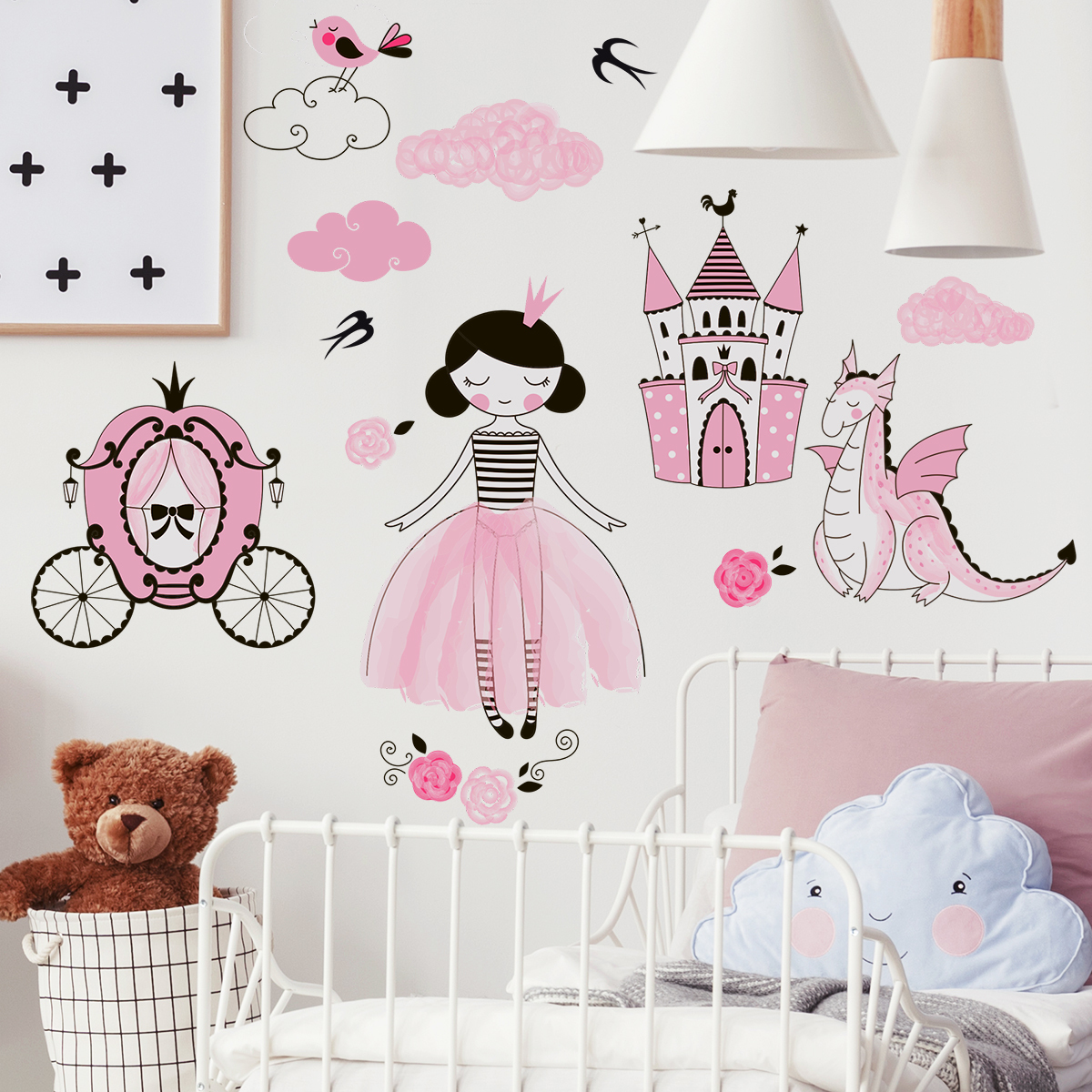 Moderní kolekce malovaných samolepek, které rozzáří dětské pokojíčky. Samolepka je zpracována na archu 88x63 cmProtože rozložení samolepky záleží čistě na vás, tak uvádíme rozměr pro představu: Princezna má 48 x 30 cm