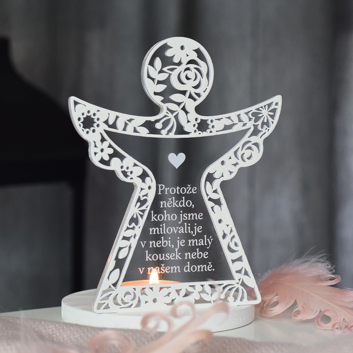 Svícen vyřezávaný anděl - Nebe v našem domě.Dokonalý svícen ve tvaru oblíbeného anděla je úžasná dekorace, která zahřeje srdce. Vybírejte z několika oblíbených citátů.Velikost: 16 x 12,5 cm číst celé