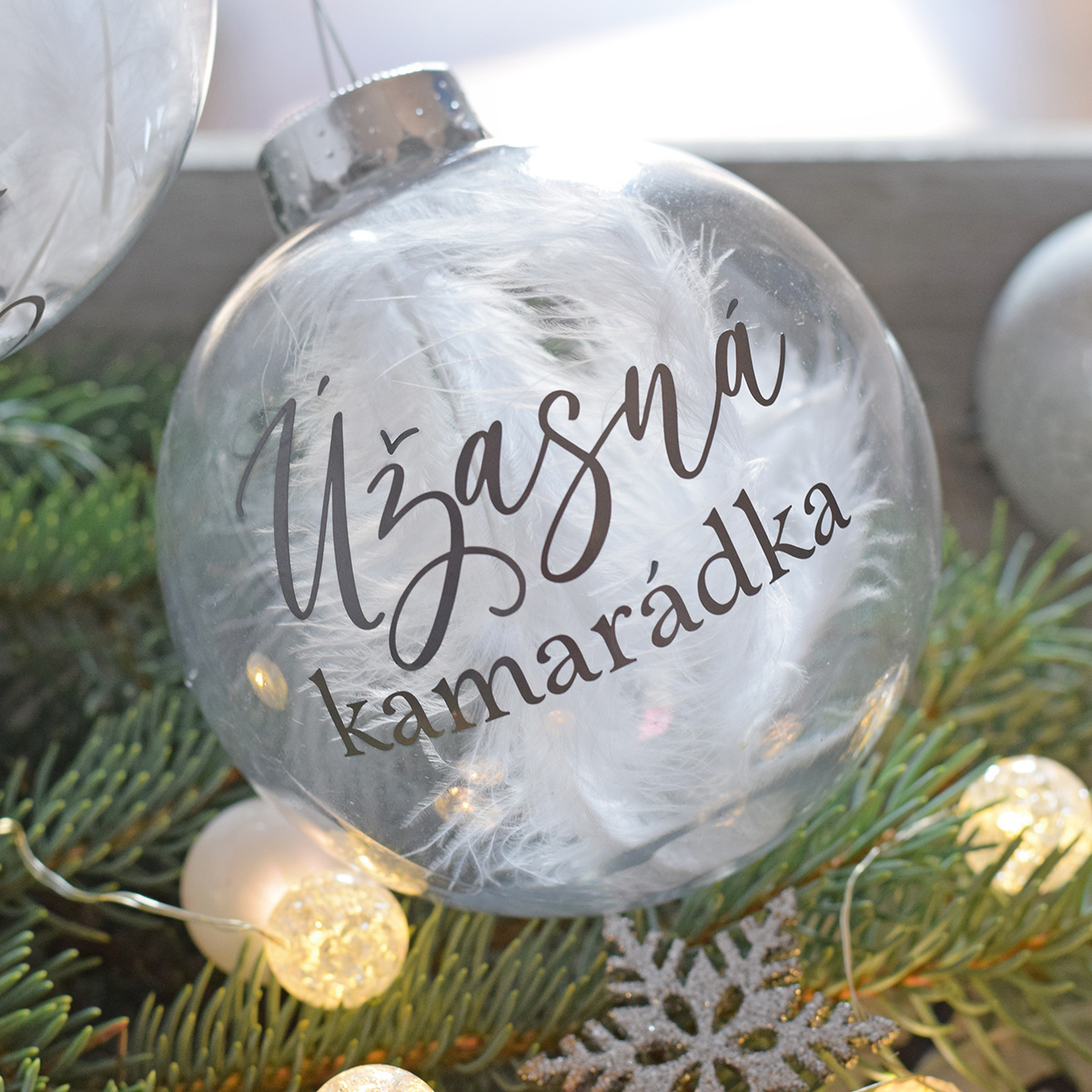 Baňka s peřím - Úžasná kamarádkaKrásná baňka jako stvořená pro vánoční stromeček. Nádherný dárek, kterým potěšíte své blízké.Materiál : akryl Originální ruční výroba.průměr baňky: 10 cm číst celé
