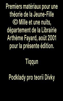 Podklady pro teorii dívky“ je pravděpodobně nejdůležitější a nejinovativnější esej posledních 20 let. Anonymní francouzský aktivistický kolektiv Tiqqun v ní analyzuje příčiny a různé procesy „mechanizace těl a duší“. Inovativně popisuje důsledky velkolepé tržní ekonomiky na své současníky,...