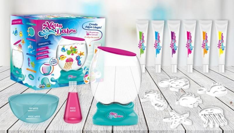 Fantastická kreativní sada, se kterou se pobaví malí i velcí. Magická voda dětským výtvorům pomůže na svět a mohou si je vzít s sebou třeba do bazénu nebo do vany. Mohou je také vložit do osvětleného akvária, kde jim budou plavat jako opravdivé rybičky. Baterie 3xAA nejsou součástí balení.