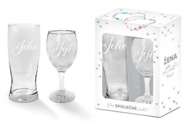 - Set obsahuje jednu vinnou skleničku a jeden půllitr.