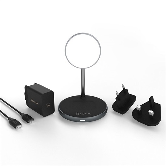 Nabíječka s bezdrátovým nabíjecím stojanem MagSafe a nabíjecí podložkou pro Apple AirPods. Dodávaná v sadě s kabelem USB-C a cestovní 24W nabíječkou. Bezdrátová nabíječka Adam Elements Omnia M2 plně podporuje systém Apple MagSafe. Díky systému, který k vašemu smartphonu dokonale přilne, máte jistotu, že vaše zařízení bude nabíjeno stabilně a co možná nejrychleji. Podstavec pak slouží jako bezdrátová nabíječka pro Apple AirPods. Současně tak můžete nabíjet jak sluchátka, tak smartphone.