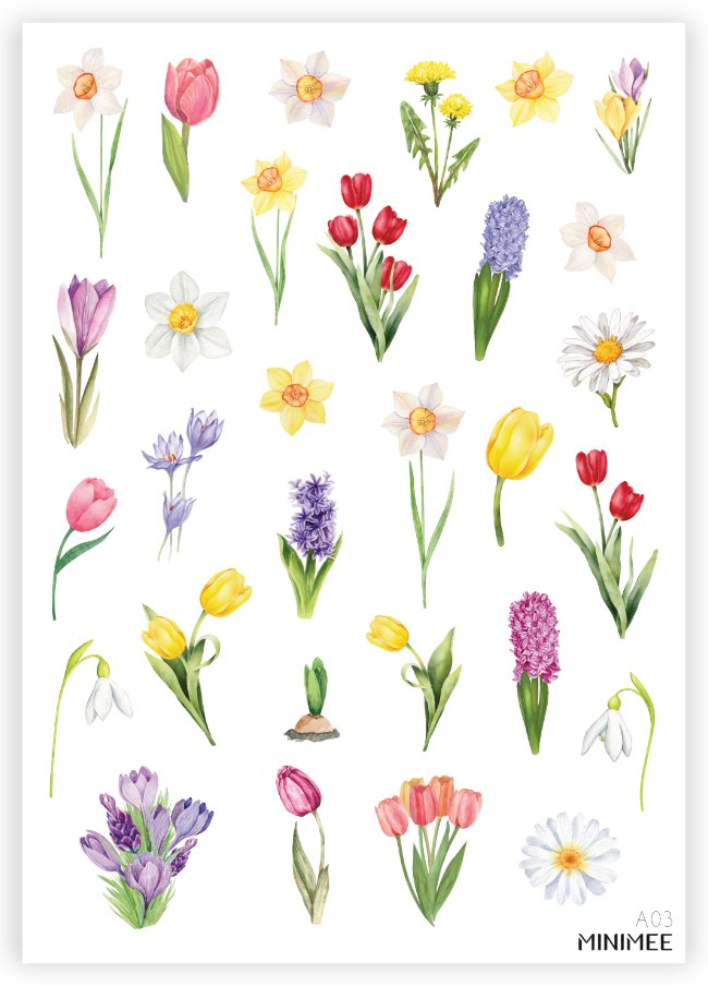 Tento aršík samolepek velikosti A5 obsahuje nádherné vyřezávané motivy tulipánů, narcisků, sněženek, krokusů a dalších jarních květin. Samolepky jsou vyrobené z kvalitního bílého materiálu s matným a přírodním vzhledem, který působí jemně a elegantně. Díky české výrobě si můžete být jisti pečlivým zpracováním a vysokou kvalitou produktu.